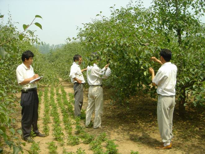 6月15-17日,安徽垦区砀山果园场为推动水果生产管理工作的正常开展,有效落实农业生产“五统一”,实现水果生产“规模化、规范化、标准化、高效化”,促进现代农业建设,组织技术人员对全场水果生产管理进行大检查。本次大检查分梨园、桃园两种类型,围绕当前水果生产管理工作中的重点,分别检查了植保、疏果、地面除草、果园卫生等内容,采取普查与定点调查相结合的方法,对全场76个重点果园进行了细致地检查。总体来看,该场虽然受春季低温影响,但全场干部职工努力克服各种困难,目前全场生产形势较好,各项生产管理工作正在有效进行。