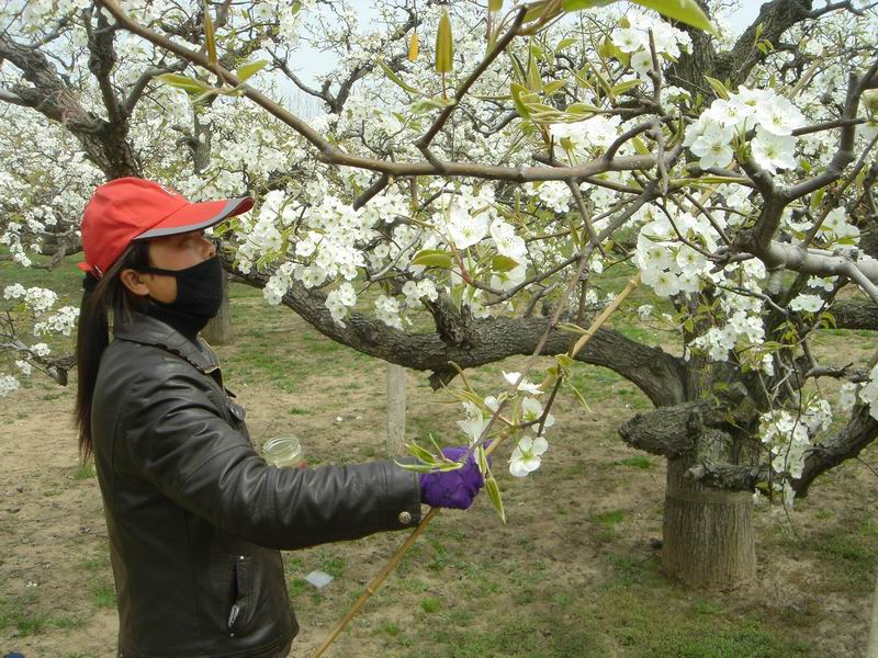 砀山果园场梨花授粉忙
