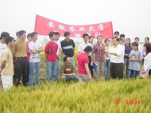 连日来,省农垦方邱湖农场今夏长势喜人的小麦, 不仅吸引了周边县市200多名种子销售商和农户前来 观摩,还吸引了安农大的学生出组织起来前往观摩 学习。(邱绪恒 常江安 摄)