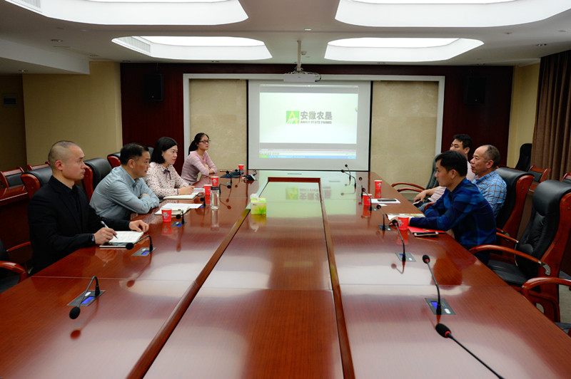 43,浙江省会稽山绍兴酒股份有限公司茹德华一行到访安徽农垦集团,洽谈合作共建酿酒专用粮基地事宜。总农艺师姚礼发及产业化部负责人参加会谈。