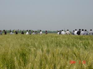 上午8时许,滁州地区种子管理总站的张世林站长带 领全椒、定远、明光、来安以及天长市农委和各乡 镇农技站的领导和专家们来到我场,在徐成银场 长、李家华书记及农技中心有关同志的陪同下,先 后深入到六分场、五分场、四分场、七分场的田间 地头,实地观看了扬麦11、扬麦12、扬麦13和扬辐 麦2号等四个品种田间长势长相,以及农技中心区域 试验、生产试验的小品种生产情况,并在农技中心 会议室召开小麦良种生产经验交流会。会上,徐成 银场长向大家介绍了我场小麦良种生产情况,恳切 希望有关领导和专家对我场的良种生产继续给予帮 助和支持。与会领导和专家在发言中对我场的麦种 生产给予了高度评价,认为农场麦种生产具备从试 验示范到推广的生产规范化,从条田档案管理、分 场统筹到农技中心产、供、销服务的良种基地建设 规模化,符合农业生产的要求,适应市场发展的需 要,在滁州地区良种生产方面树立了榜样。与会者 纷纷表示将充分联系,广泛交流,进一步与农场搞 好良种生产合作,努力推动种业再上新台阶。 (王国朝)